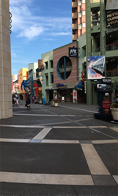 ユニバーサル・スタジオ・ジャパンにも行ってきました。 写真は早朝のユニバーサルシティウォークです。まだ朝7時ごろなので人が少ないです。 ときおり海から吹く風が気持ち良いものの、飲食店特有の油っぽい空気が漂っています。 その一帯は禁煙なんですが、タバコの吸い殻が落ちていたりして、多少感じわかるかった。